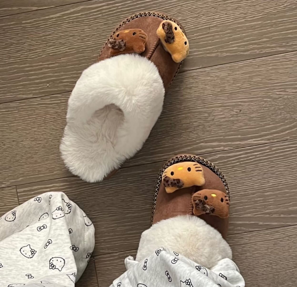 They give total Hello Kitty energy without being too extra 🩰✨ The beige color goes with everything, and they still look new after so many cozy mornings. I literally feel like a soft girl in a movie every time I wear them.
